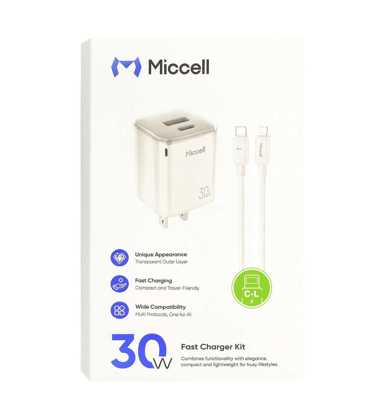 Carga tu dispositivo de forma rápida y eficiente con nuestro completo kit de carga. Este kit incluye un potente cargador de pared de 30W con puertos USB-C y USB-A, además de un cable Lightning a USB-C de alta calidad.