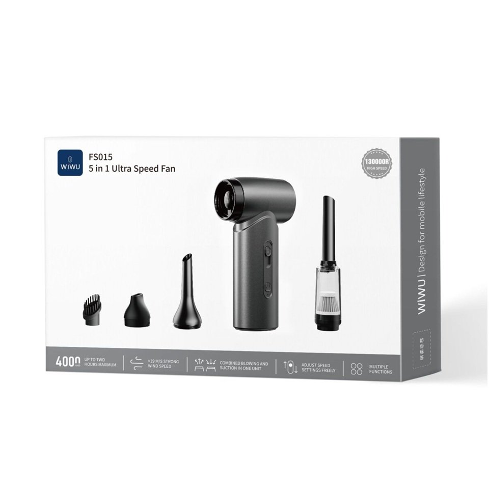 Equipado con un motor de alta velocidad que alcanza hasta 130,000 RPM, el FS015 genera un flujo de aire impresionante, capaz de refrescar cualquier espacio en segundos. Su diseño optimizado garantiza una disipación de calor eficiente, permitiendo un funcionamiento continuo y potente.