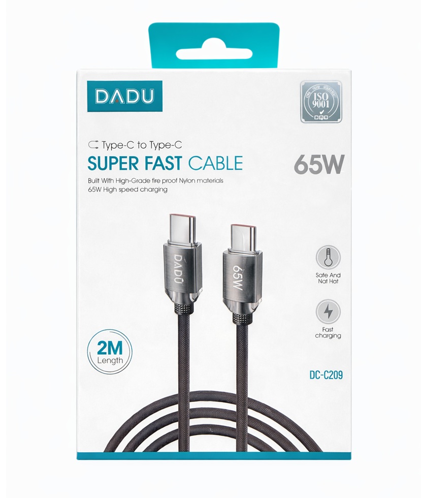 Experimenta la velocidad y la eficiencia con nuestro Cable Type-C a Type-C Súper Rápido DC-C209. Diseñado para la carga de alta potencia, este cable soporta hasta 65W, lo que significa que podrás cargar tus dispositivos compatibles en un tiempo récord. Su longitud de 2 metros te ofrece la flexibilidad que necesitas para usar tu dispositivo cómodamente mientras se carga, ya sea en tu escritorio, en el sofá o incluso en la cama.